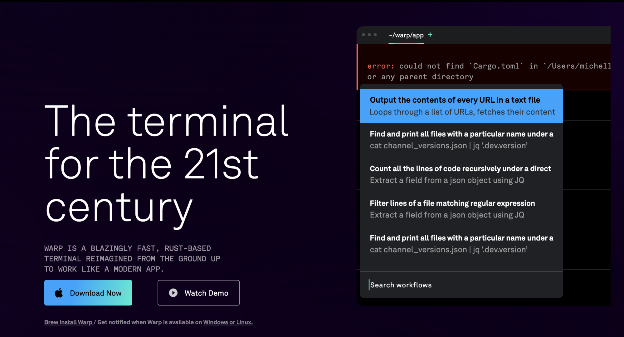 Warp is a RUST-based terminal, reimagined from the group up to work like a modern haps. Visual history, blocks (templates), built-in text editor and command lookup while being super fastest and secure (all cloud-based features are opt-in). It works with bash, zsh and fish. It’s Free for individual, and teams or enterprise features will be subject to charge out of beta.